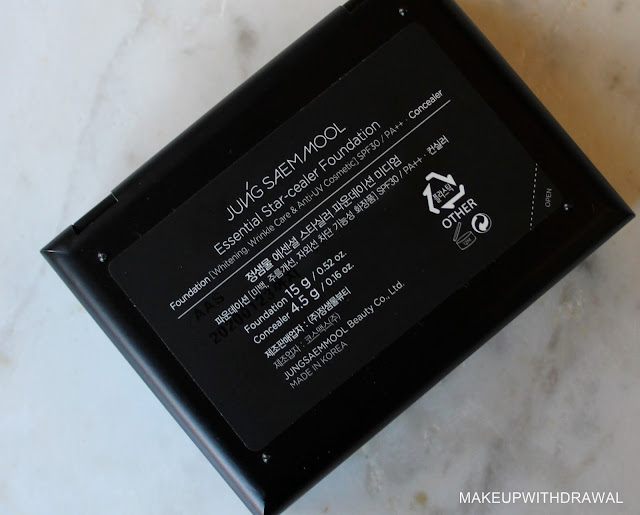 This is my latest blind buy success, my first product from Jung Saem Mool. It took me a while to get used to the boxed format, but the Essential Star-cealer Foundation quickly became my favorite foundation.