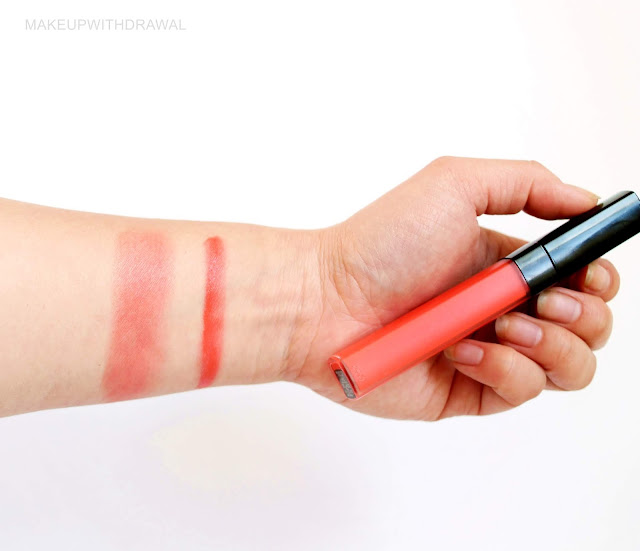 I have been wearing it as a part of a gradient lip and lightly tapped into my cheeks as blush, matchy matchy. I used a finger tip for both applications. It looks more pink-coral than orange on me, but I like it all the same. What I like about the formula is that it is very moisturizing and still manages to be all-day wearing.
