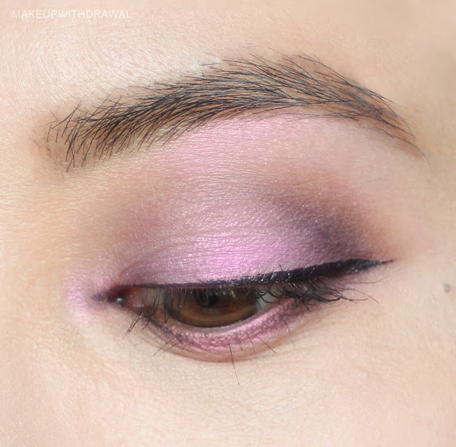 One of the shadows in the palette really irritates me. The pink is hands down, one of the most terrible eye shadows I have ever encountered. It's so odd that it makes me think that this might be a defective pan - the top is lighter as if it were a coating over darker powder underneath. This shadow is awful, even with an even layer of eye primer, it looks horrendously powdery and emphasizes eyelid wrinkles that I'm pretty sure I don't even have!