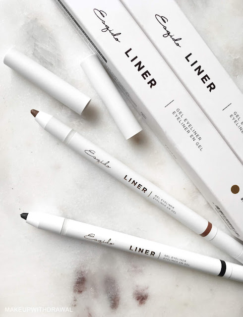 The Esqido Gel Eyeliner comes in two shades so far, Black and Brown. They're housed in white matte packaging which is not the greatest when it comes to makeup, as it stains and gets dirty very easily. The end of the pencil features a built in sharpener.