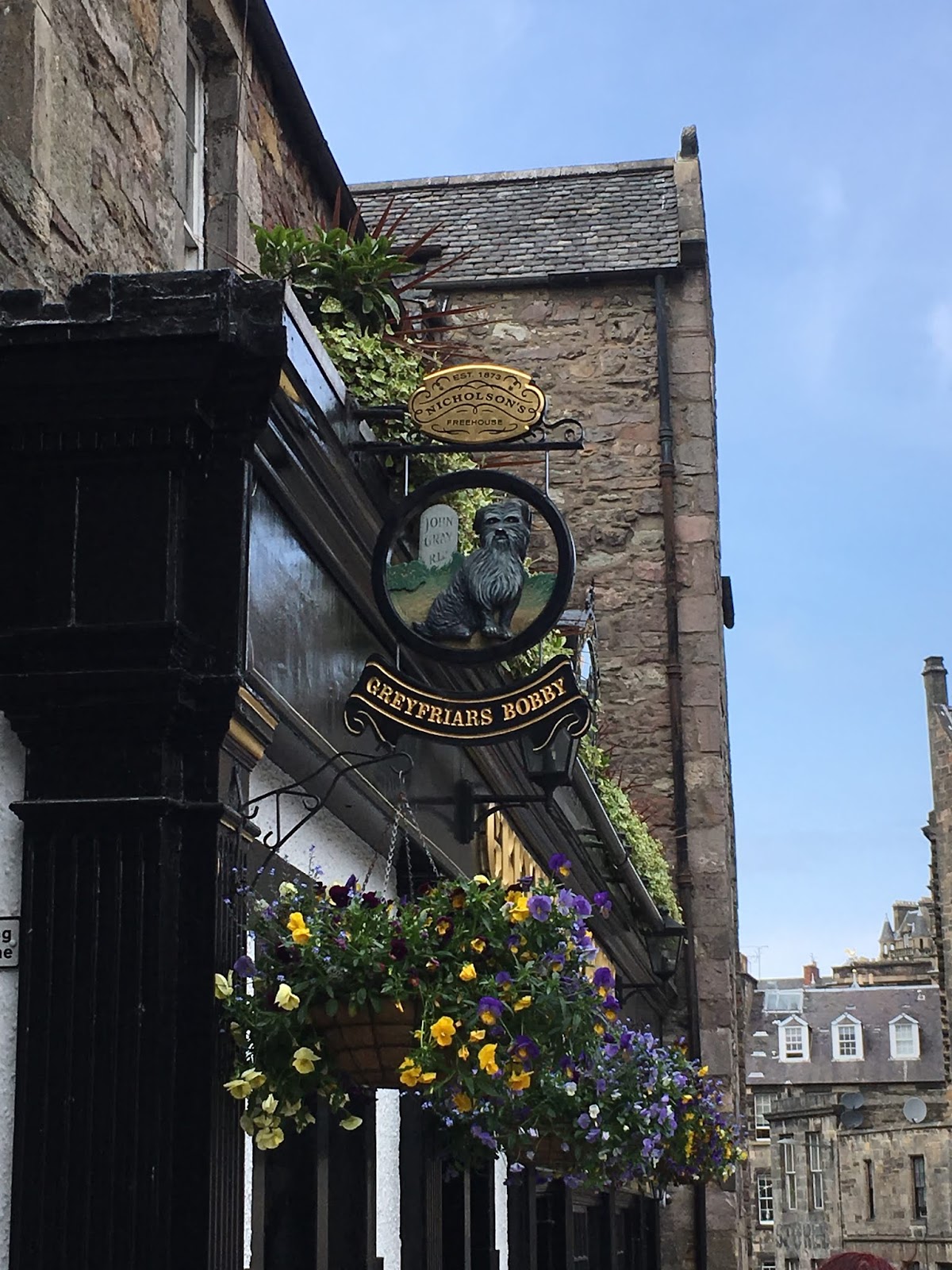 A tavern sits near the site commemorating Greyfriars Bobby, a skye terrior who guarded his owner's grave for many years after the owner passed away.
