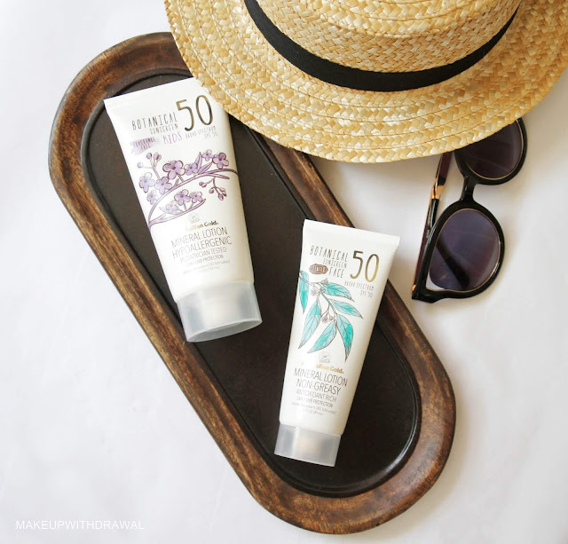 I like the finish on this one a lot but you should know that it will need to rub quite vigorously and that it has quite the white cast. Once the sunscreen sets (couple of minutes) it won't rub in any further and on top of that, becomes quite difficult to remove with anything other than a cleansing oil. The drawback about the rubbing requirements is that it can make products pill that normally don't ball up, all that friction from the hand will push products that usually sit together nicely. There's been a few incidences where I noticed hours too late that I had a white patch on my ear or side of my neck that I missed, so for that reason I think I prefer the tinted version even though the finish of the Kids Botanical SPF 50 feels a little nicer to me.