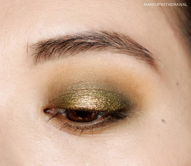 I really liked using Milieu as supporting shades to Melt's Smoke Sessions palette. The warm browns play nicely with those greens. Here I used the mustard color in the top row of Milieu, as well as both of the browns in the second row. From Smoke Sessions I used Black Widow and Sour Diesel (review of that palette here).